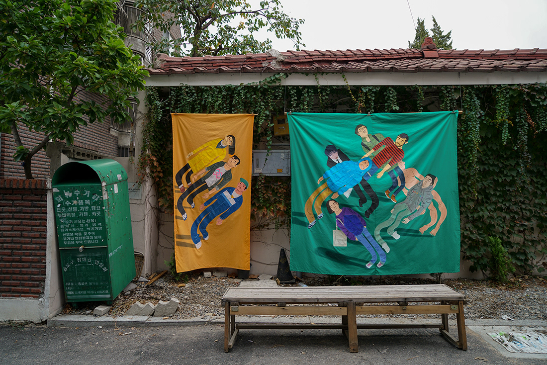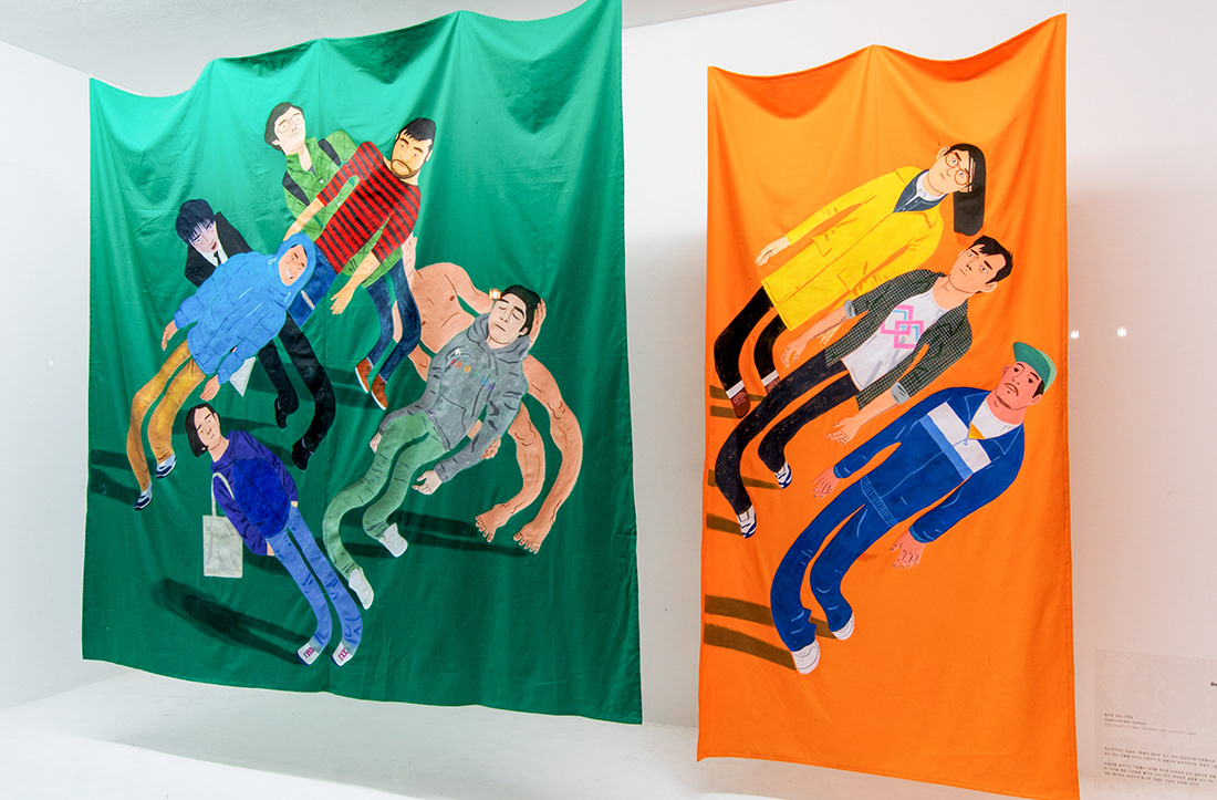 2014_천 위에 아크릴릭 과슈_200x200cm, 200x100cm
