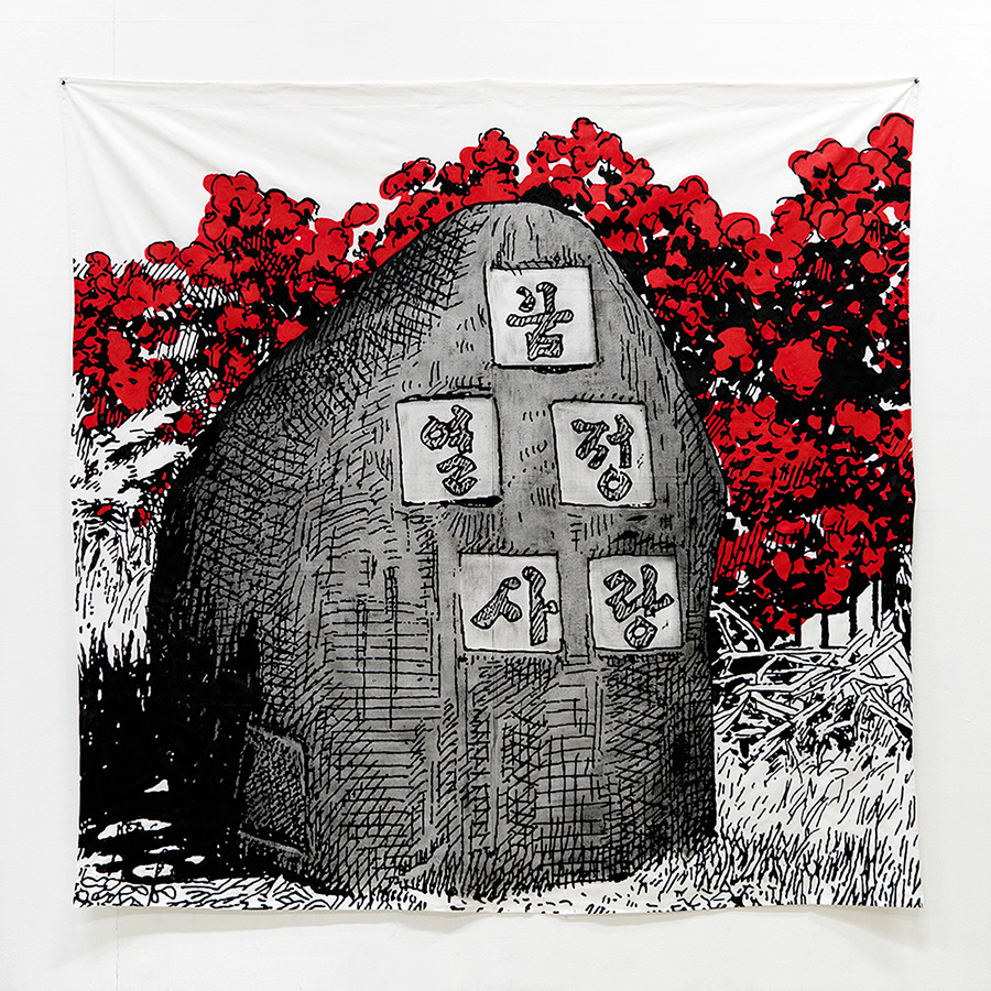2018_천 위에 블랙 제소, 수성페인트_210x210cm