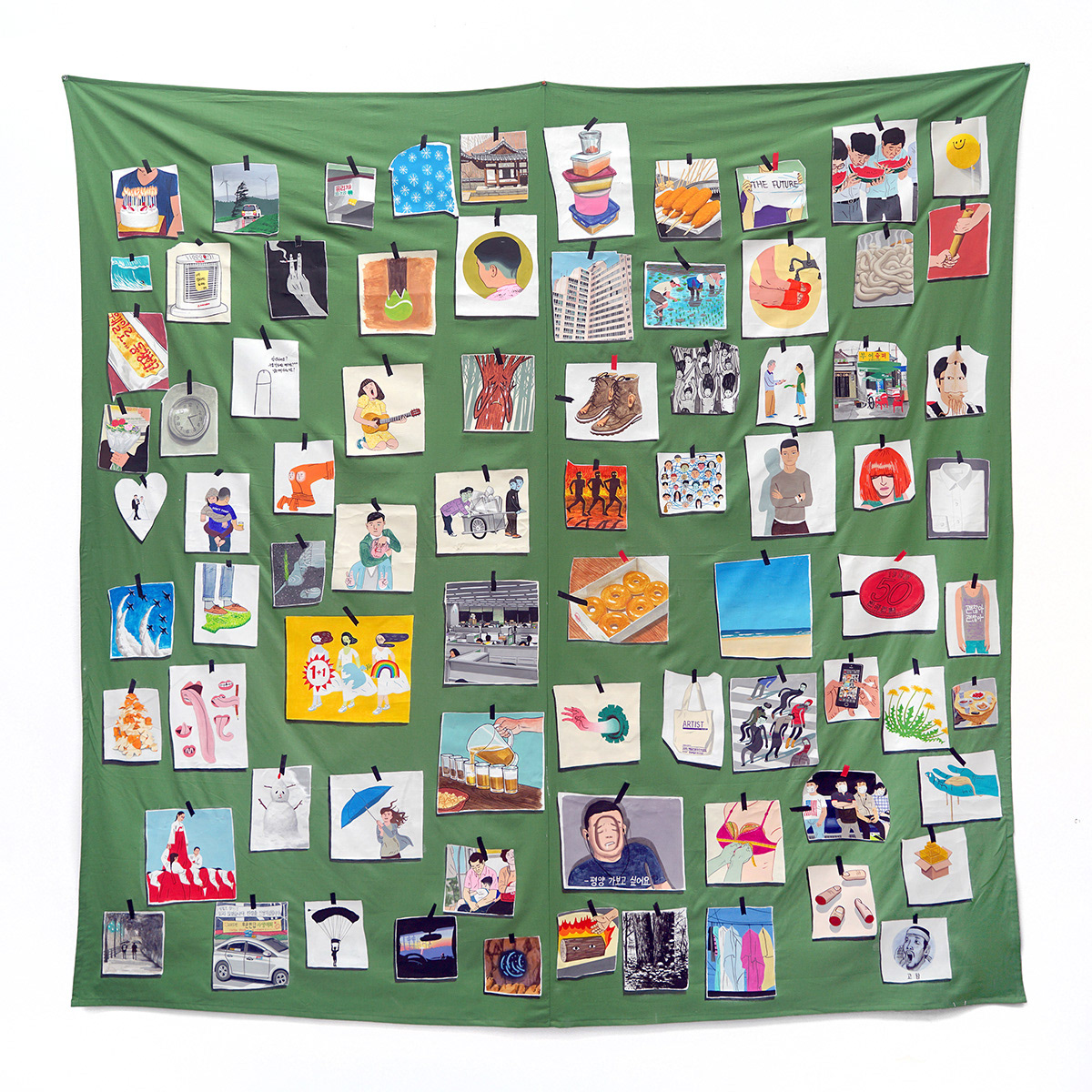 2015_천 위에 아크릴릭 과슈, 아크릴릭, 수성 페인트_210x210cm