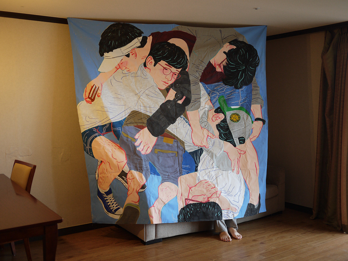2015_천 위에 아크릴릭 과슈, 수성 페인트_210x210cm