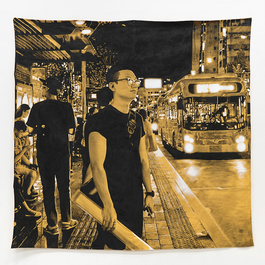2017_천 위에 블랙 제소, 아크릴릭 과슈_210x210cm